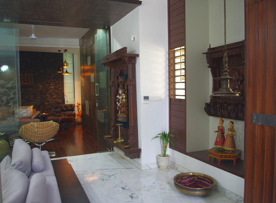 With a challenging brief, where number of traditional art pieces was to be placed in a way that each could find an identity of its own, this house is a blend of contemporary design with traditional antiques.