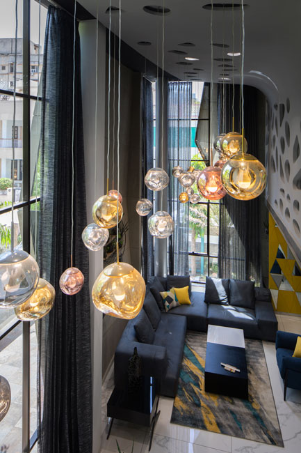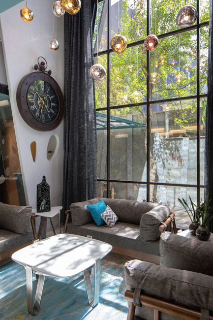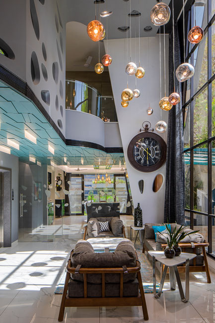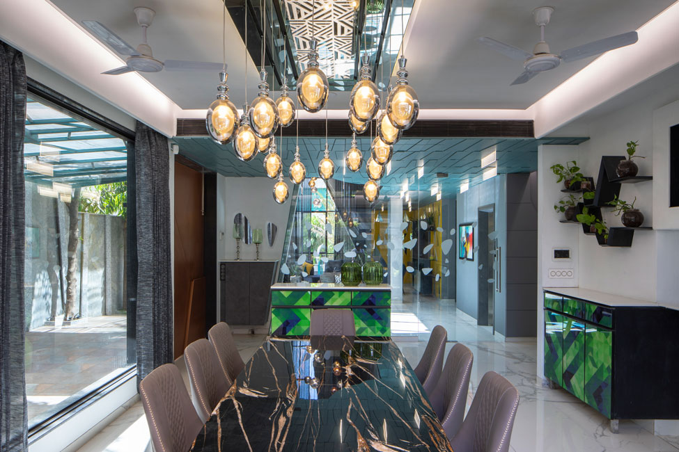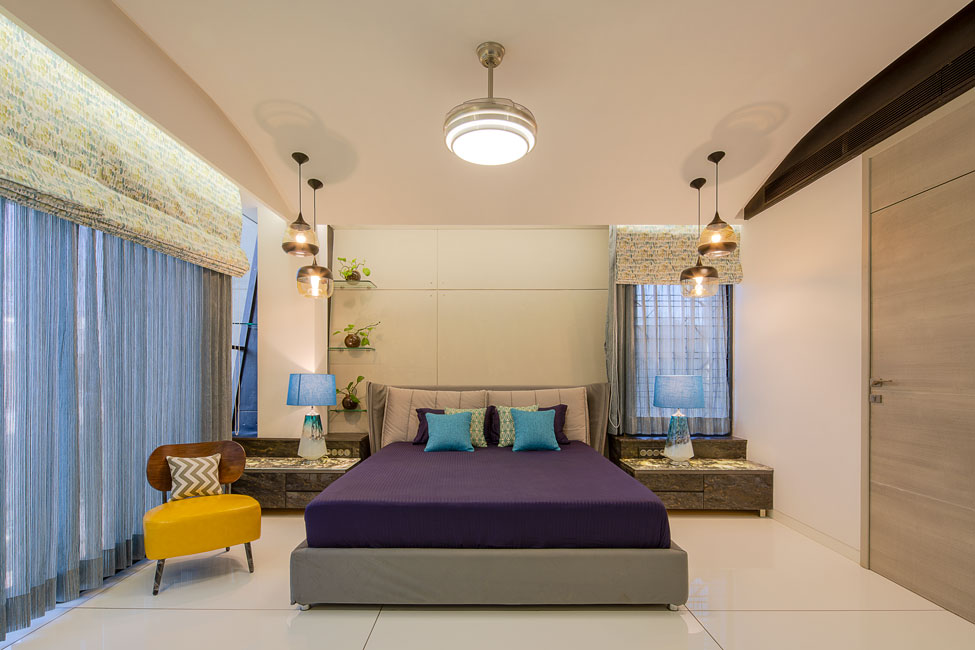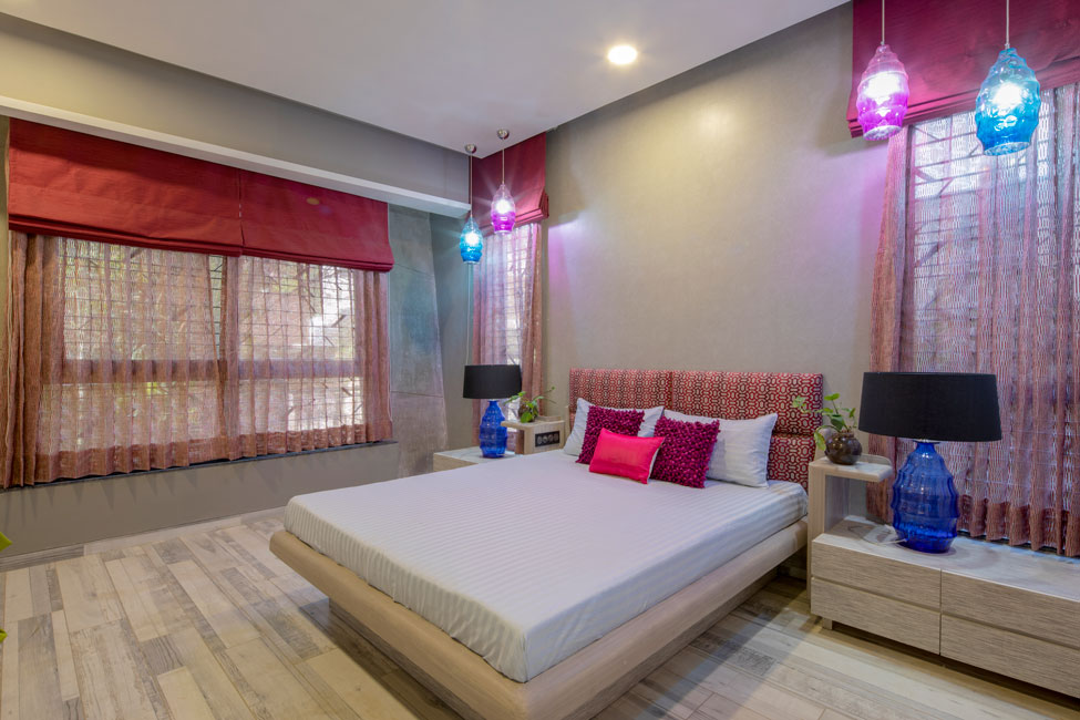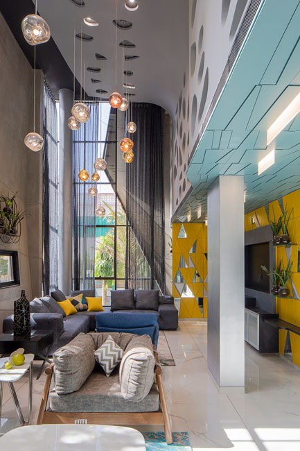 Since this house has direct sunlight most part of the day, the interior surfaces has been rendered with an extensive use of colour to compliment it. An array of bright colours, have been added to create a vibrant atmosphere.