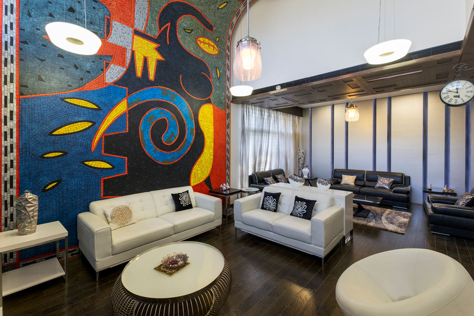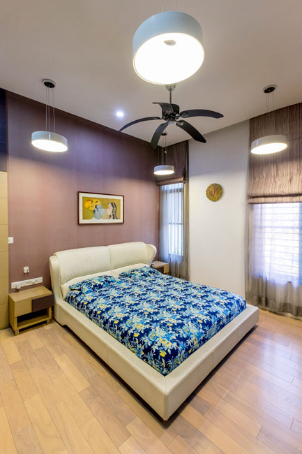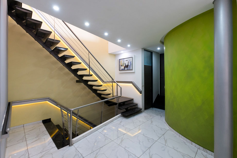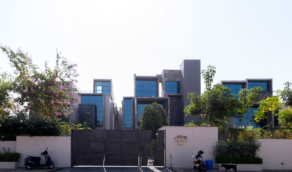 This project had a very specific brief of designing three residences on a single plot. These three residences were to be occupied by the families of the owner and his two sons individually. The challenge was to design three individual houses and yet have a harmonious look. Each house had to be provided with a unique character but also maintain the synchronicity of the exterior. This was achieved by breaking up the external façade into several cubic volumes stacked vertically as well as placed adjacent to each other. This system of cubic masses was employed in such a way, as to ensure that each house had a distinctive façade. But overall there was a similarity of language maintained to create a cohesive harmony.