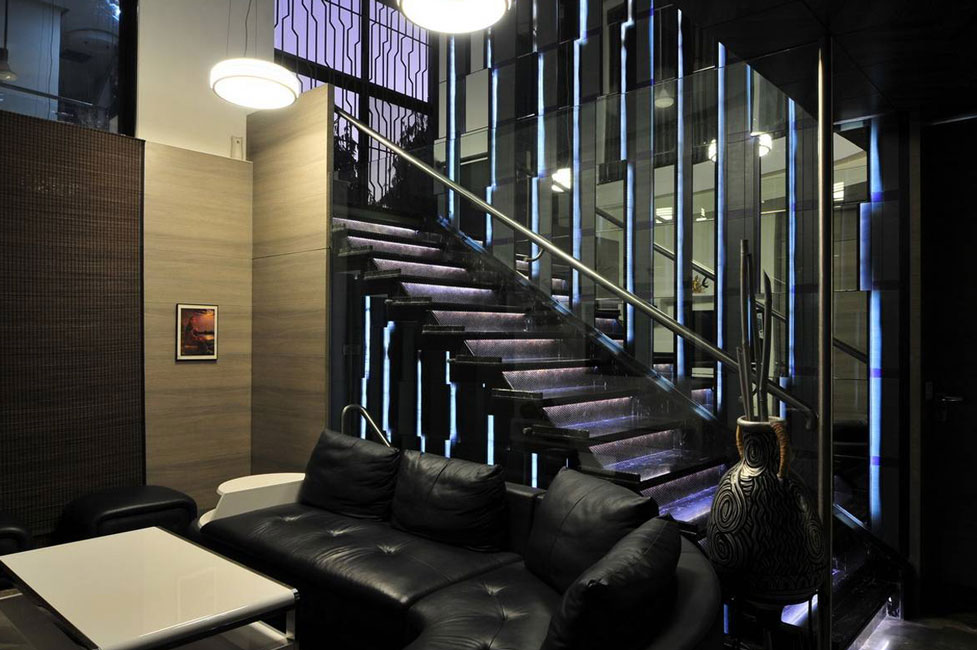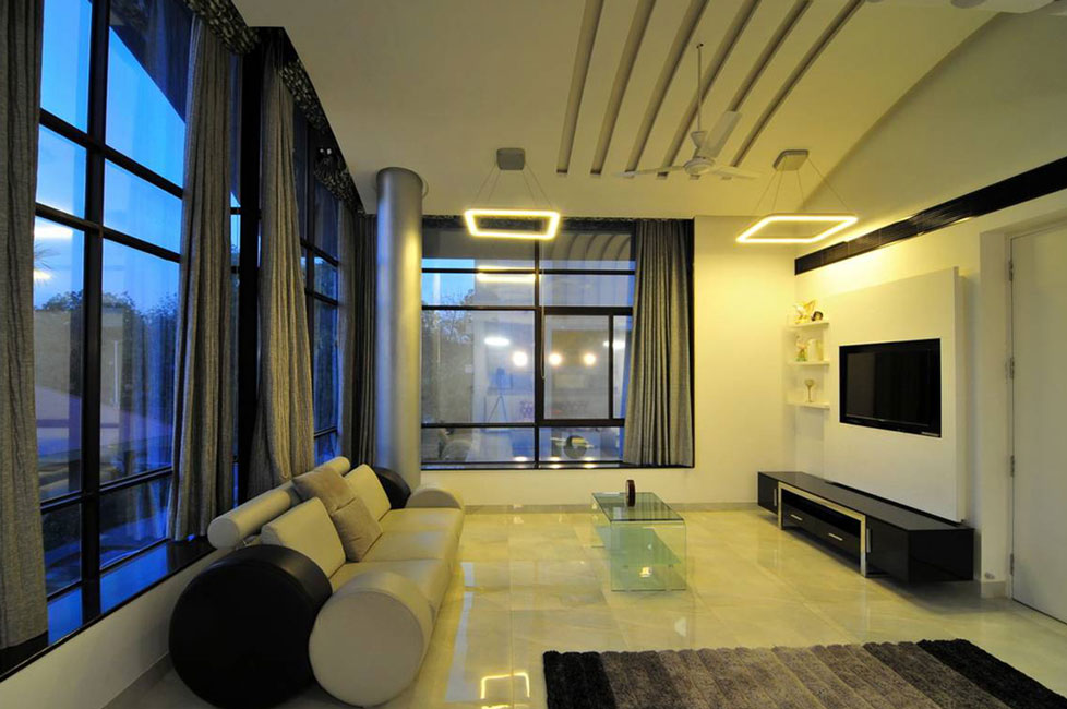 But when the sun goes down each fold of the surface is either highlighted or subdued to accentuate the textures offered by different materials installed on it.